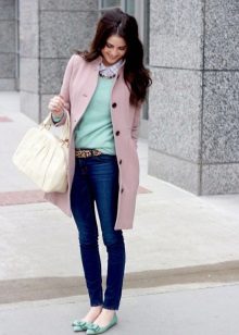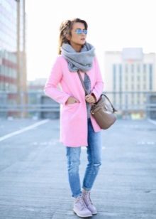 A jacket coat is also popular among young people, however, it only suits a slim figure. It is also combined with dresses - cases, tight jeans and skirts. The most daring can appear on the street in a short skirt and leggings.