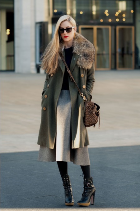 Under the style of any coat, you can choose the appropriate stylish outfit. There are a few rules. For example, when choosing a strict dress or skirt for a classic coat, it should be borne in mind that the hem should not be visible, or can protrude no more than 10 centimeters.