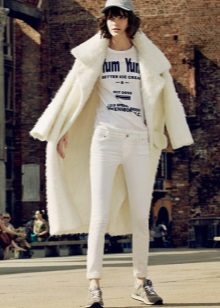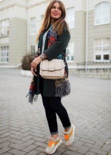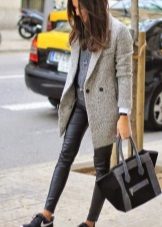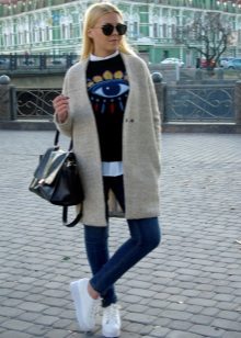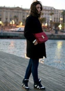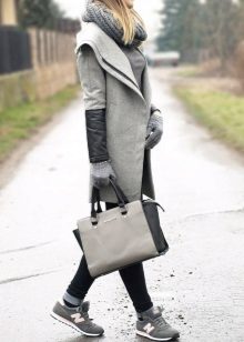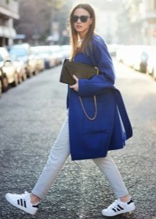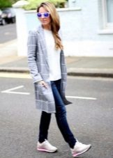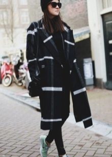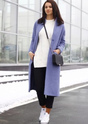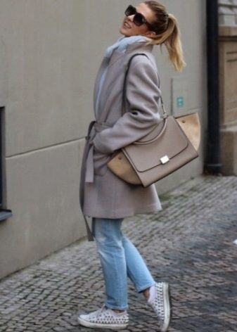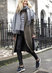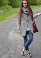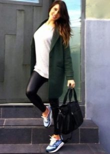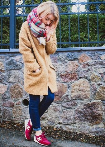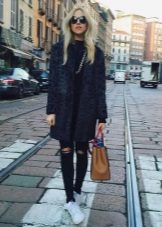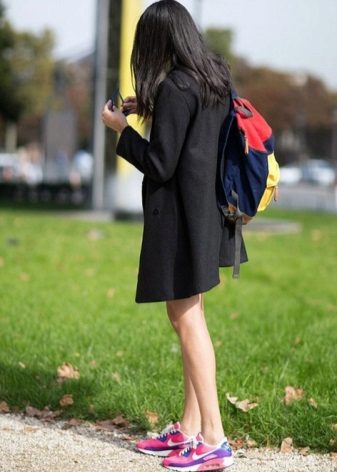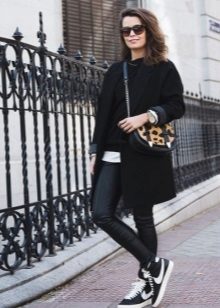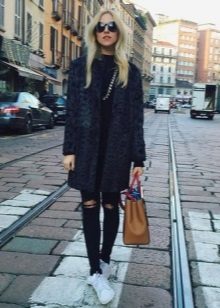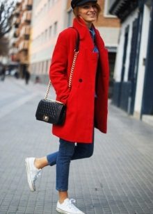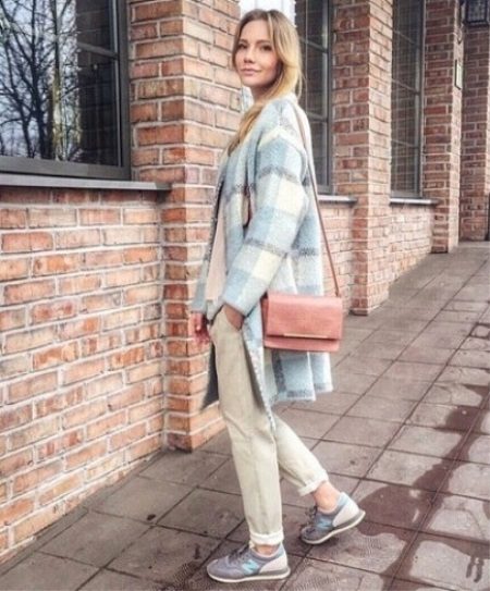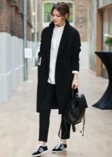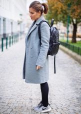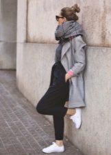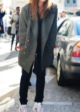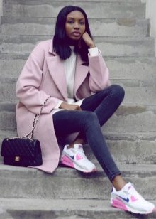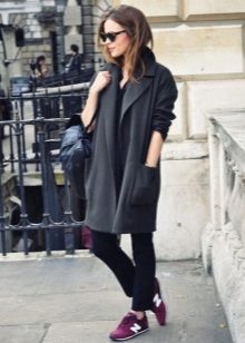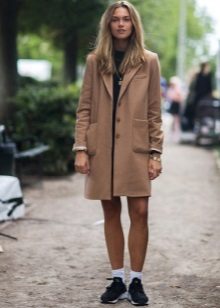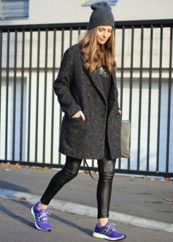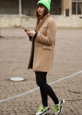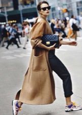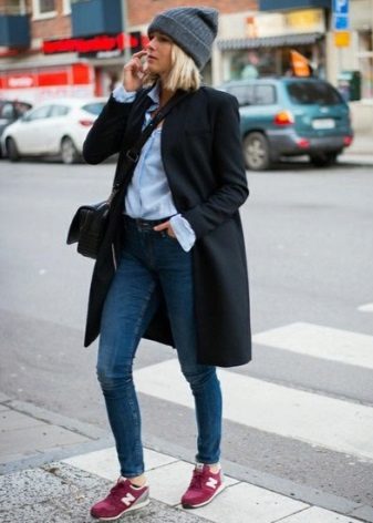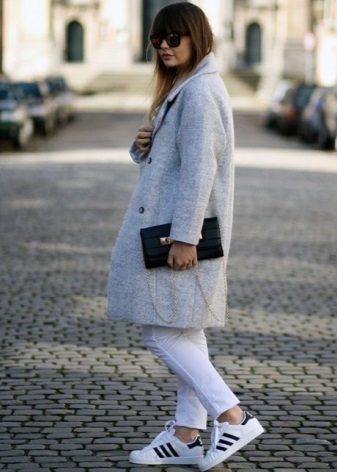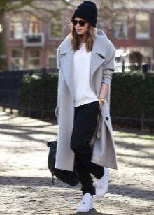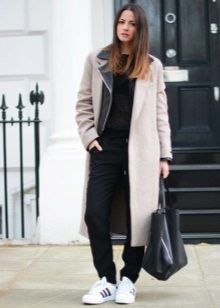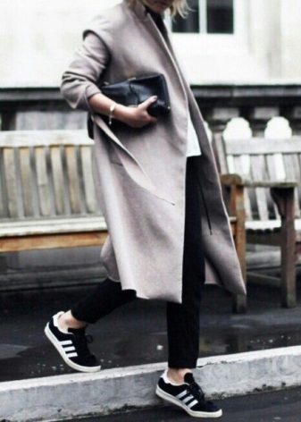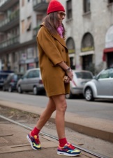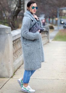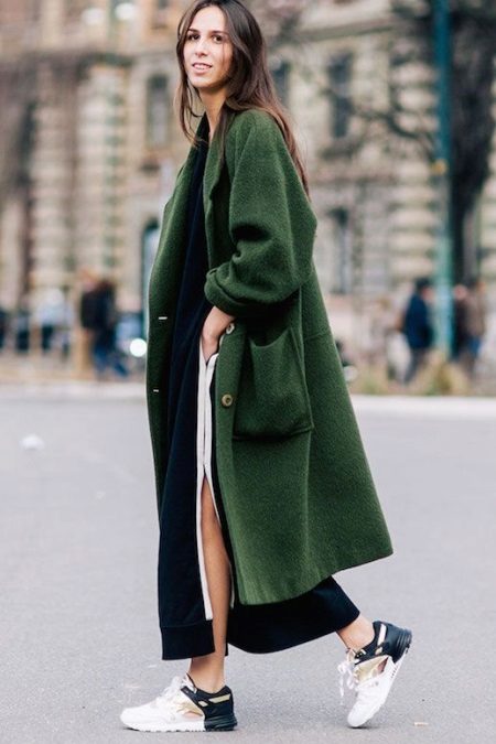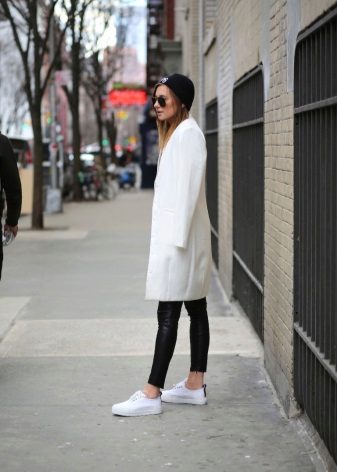 Of course, not every coat will look good with sneakers. Straight, slightly fitted or loose models are preferred. Moreover, the length can be any. Looks good short, long and coat to the knee.