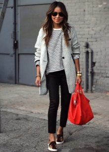 Such a duet is suitable only for slender tall girls, because it can make a figure squat or even baggy. To properly comply with the proportions, it is worth rolling up the sleeves. Thanks to the demonstration of thin wrists, the figure will not look so overweight.