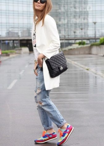 - Remember that sneakers should look good not only with a coat, but also with the rest of the elements of your image.