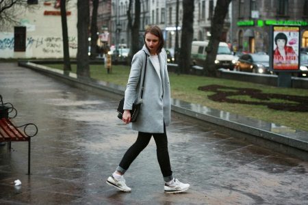 If you care about your health, choose comfort, but want to be in trend, you can safely start wearing a coat with sneakers.