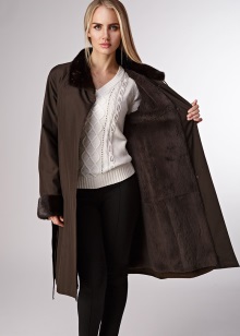 Women's coats with liners emphasize a delicate silhouette and visually make the figure more slender if they have an impeccable cut and various verticals (seams, lines or stitches). Such outerwear should be selected solely in size, since if you select too wide a coat, the figure will visually become too large and voluminous.