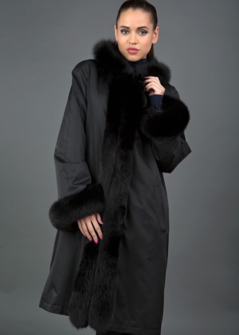 Collar and sleeves in elongated women's coats can be complemented with faux dyed fur.