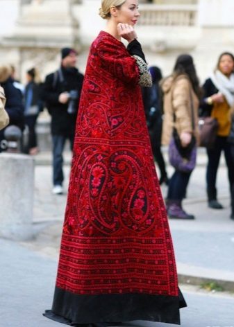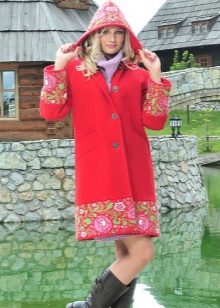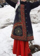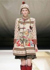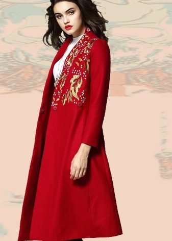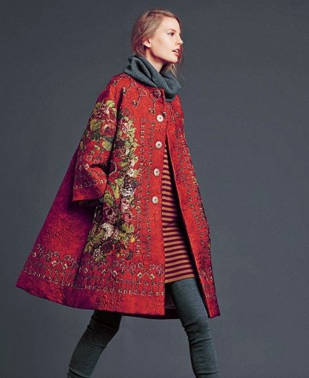 One of the most stylish and original embroidered models is a coat decorated in the Russian style. Rich embroidery, bright colors, and spectacular design are very characteristic of this theme. The prototype of such a coat is the old Russian caftan of wealthy merchants, nobles and even the king.