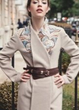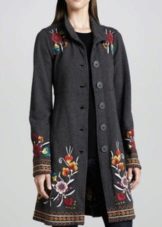 Most often, such coats are performed in plain colors - black, gray, beige. The embroidered pattern looks brighter and more spectacular on monophonic materials.