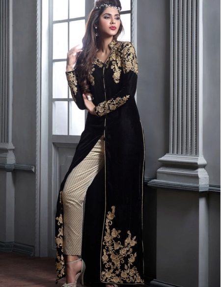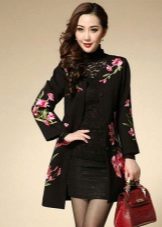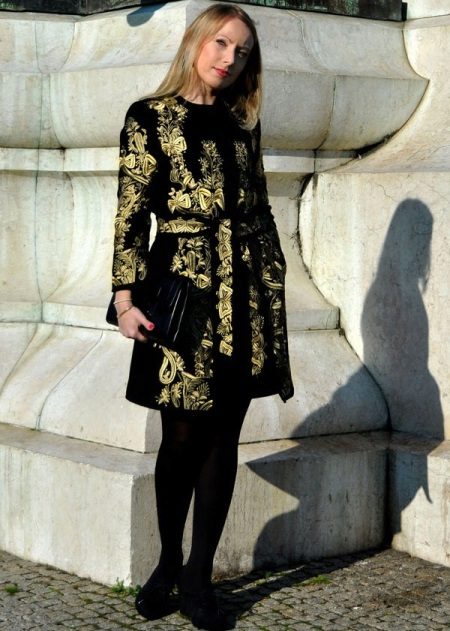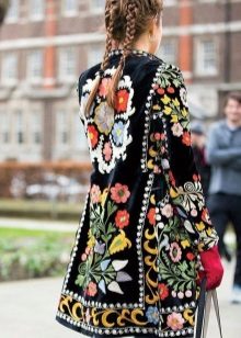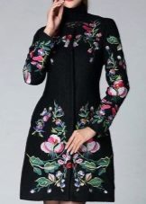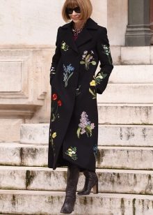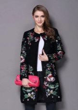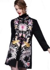 Black coat is ideal for various embroidery. Especially stylish and expensive looks beautiful embroidery with gold or silver thread. The pattern can be thin, delicate, for example, embroidery of flowers or other vegetation.