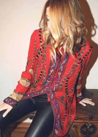 Embroidery is suitable for decorating such a beautiful wardrobe item, just in case. This can be an exotic ornament or an oriental pattern, the original processing of textured slots, embroidery with stitch, ribbons, etc.