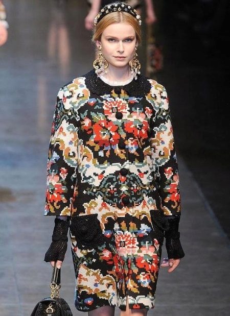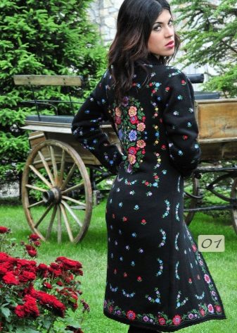 The main embroidery techniques are surface or cross. The choice of a suitable technique largely depends on the type of ornament and the style in which the coat is made. For example, if the model is made in ethnic or folklore style, then a cross-stitch pattern is best for decorating it.