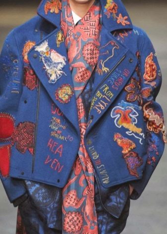 - Fantasy patterns, abstraction. Thin interwoven threads, original ornaments, unusual figures embroidered on the coat turn it into an extravagant, stylish thing.
