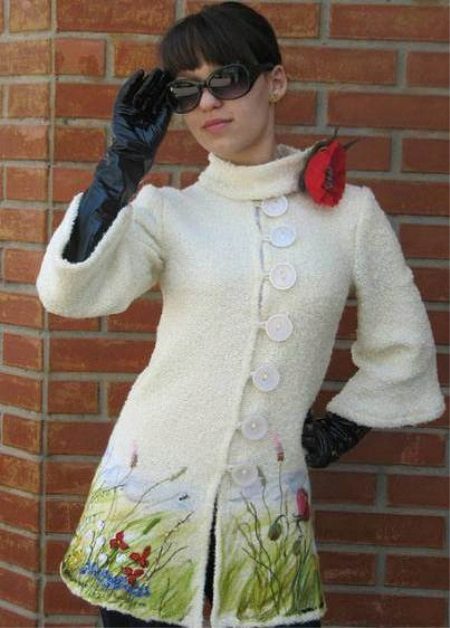 Flowers, leaves, intricate ornaments and ornate patterns are stitching. Sometimes several techniques are applied at once when decorating one model. Such coats look especially elegant and unique.