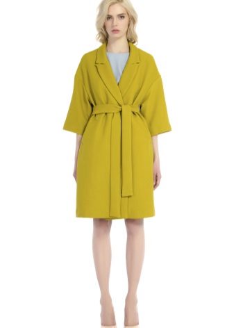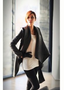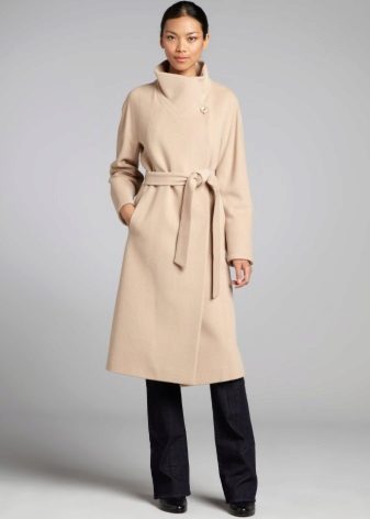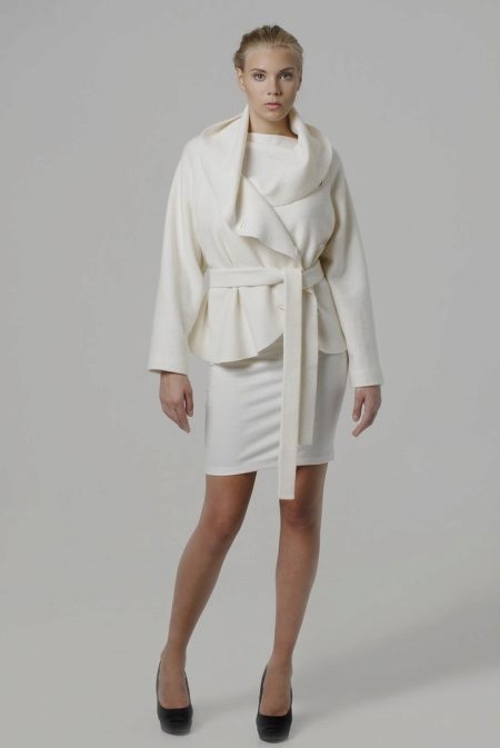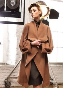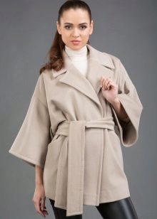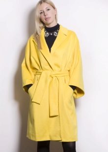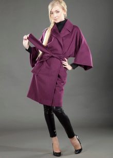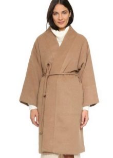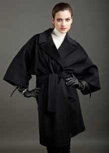 One of the modifications of the wraparound coat is the kimono that carries Japanese motifs. His other name is a coat-robe. The most successful choice of such a style will be for evening and formal events, since the coat does not have buttons, and for everyday wear is not entirely practical. A sleeve three quarters long in the warm season will emphasize the beauty of female hands.