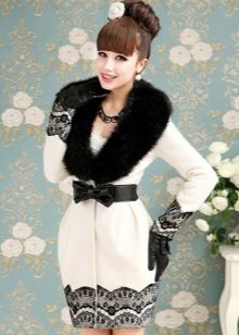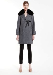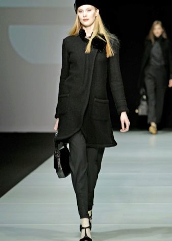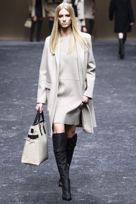 If the coat has some bright accent in the form of a fur collar, massive brooch, lace decor and other elements that boldly declare itself, then you don’t need to wear it with multilayer, elaborate and complicated things, just put on a dress case and not bulky shoes, for example neat boat shoes.