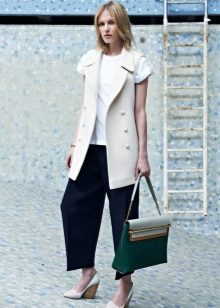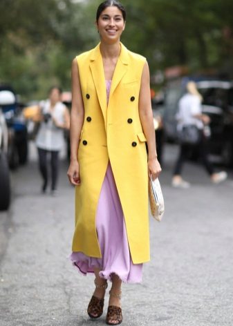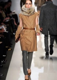 It is worth highlighting a fashionable coat with a sleeveless smell, with a decorative fringe finish. It has a strict jacket cut, and any length from mini to maxi.