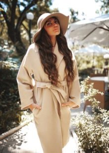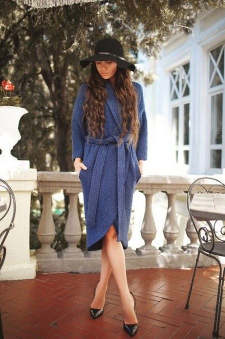 A wraparound coat like no other will go great with a wide-brimmed hat. A combination of a coat with high boots at low speed will be excellent, very stylish, and most importantly a convenient option.