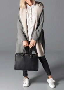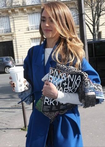 From any length of a wraparound coat, you can carry both a bulk bag with handles and a small one over your shoulder and clutch, taking into account the degree of decoration of the coat itself.