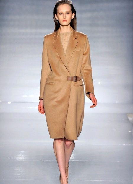 Owners of an apple-shaped figure should choose a coat with precise and expressive vertical lines, without unnecessary details. The only element that can be emphasized is a wide belt, emphasizing the slimness of the figure.