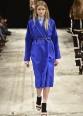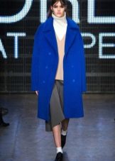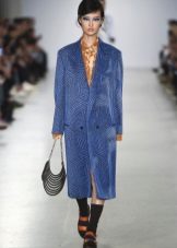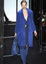 This season, fashion designers present the widest selection of coats of blue flowers of various styles using mainly the following materials: wool, cashmere, drape, tweed, boucle, angora, leather, suede, denim ...