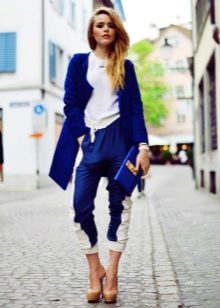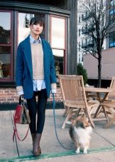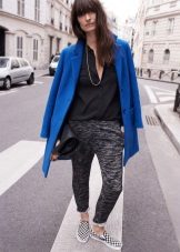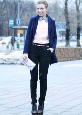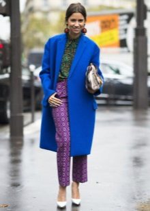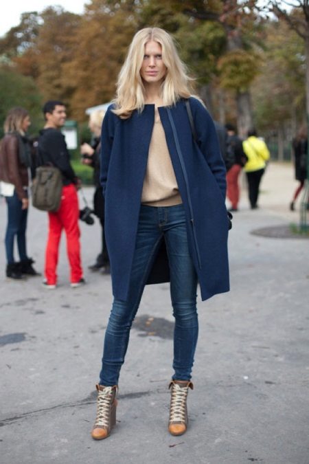 From trousers, you can give preference to skinny jeans or tight-fitting trousers that fit the blue coat of any style. But if you like loose-fitting trousers, then you need to choose the top of a cardigan, cape or overcoat style for them.