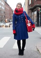 As accessories for a blue coat, you can choose, for example, terracotta elongated gloves, a red scarf, a red tippet, purple snood, a soft pink neckerchief, a lilac hat, a pale blue French-style beret, a white bag, a black belt, coral bracelets , vintage brooch with a large stone in the color of a coat, beige boots, brightly printed sneakers ...