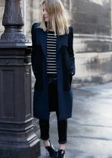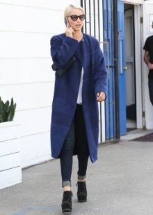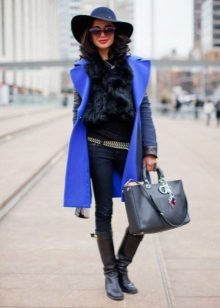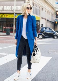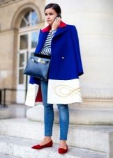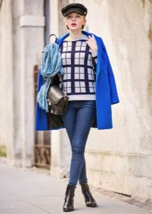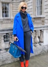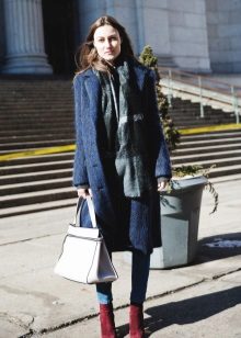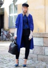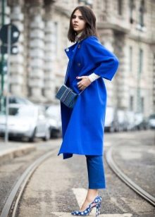 The oversized coat in blue can be “diluted” with skinny jeans and a bulk bag.