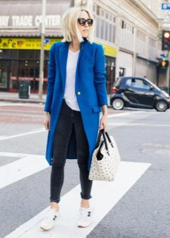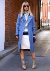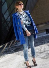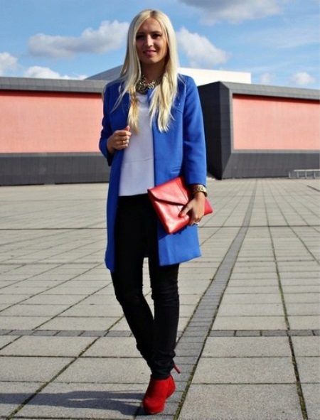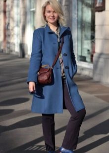 Coats of blue shades of classical cut of medium length look great with a pencil skirt, sheath dress or straight trousers with an arrow, the perfect pair of shoes for this ensemble are high-heeled shoes.