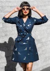 Thanks to the efforts of modern designers, any fashionista can choose a blue coat with her favorite pattern or print. The most popular traditional cell. In a cellular print, blue is perfectly combined with many colors, for example, with black or red. Cell size can be varied - from the smallest to the largest coupon.