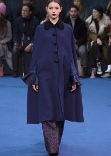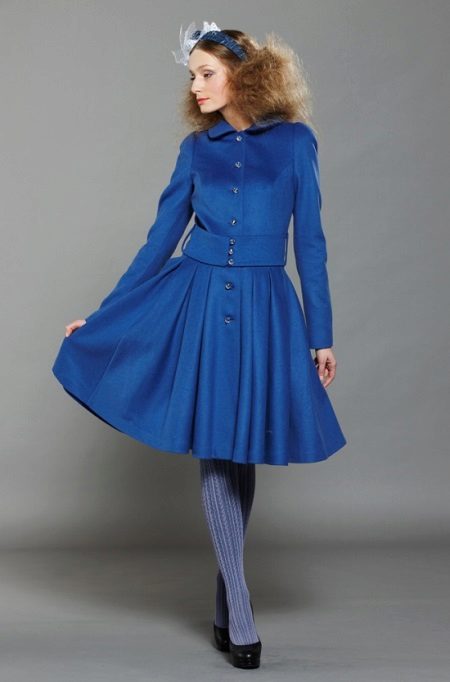 Youth hit - a pleated coat or coat dress in a blue tint. The bottom of these models resembles a flared skirt or a skirt-sun. Their length is usually just above the knees. Similar styles look great with fur collars. Moreover, the fur may also be blue, but a slightly different shade than the coat itself.