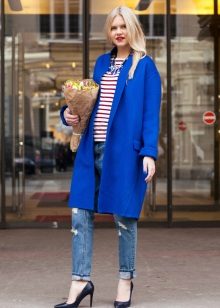 When choosing a blue coat of the required length, think about what items of your wardrobe you plan to wear: