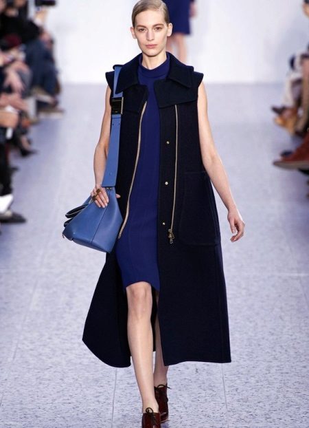 A blue coat without sleeves or with shortened sleeves in three quarters managed to take a leading position in the fashion market and fall in love with many representatives of the fair sex.