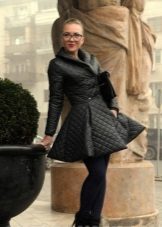 A quilted coat on a synthetic winterizer can be successfully combined with a lot of things from your autumn-spring wardrobe. One of the most important points is the selection of a suitable pair of shoes. Depending on the situation and the weather outside the window, it can be elegant boots, high heel shoes or even bright rubber boots.