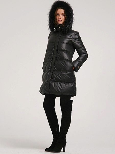 Quilted coats on a synthetic winterizer, as a rule, consist of three layers of materials: top, filler and lining fabric. The “upper” fabric can be almost any, the main thing is that it be sufficiently dense and well protect from wind and rainfall. In addition to Bologna and polyester, leather and cotton fabrics treated with special impregnation are used for these purposes.