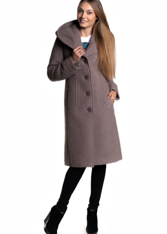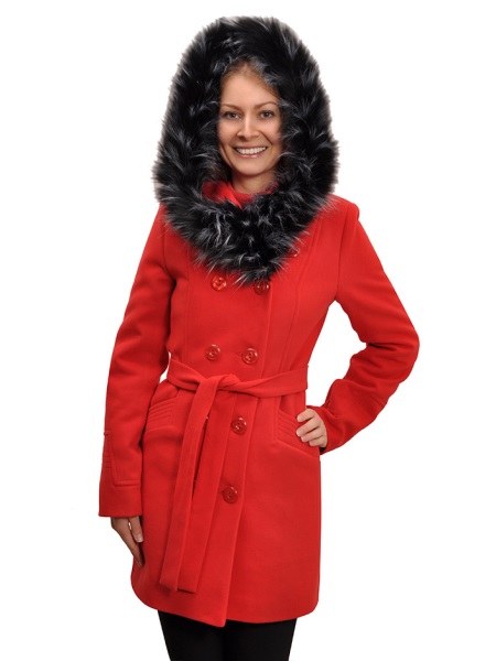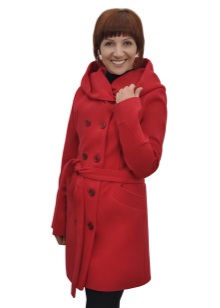 The coat can be decorated with strict buttons in the same tone with the finishing details. The models of this group have a classic cut, are made out with a secret fastener, single-breasted or two rows of buttons. Some models have a wide belt accentuating the waistline. A small hood protects against wind and weather.