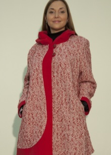 A special place in the color line is the red line, presented in red, burgundy and terracotta. Products of this group are distinguished by styles having a large lapel and edging. Designs can be very short, up to the line of the hips, or elongated. The main silhouette is straight.