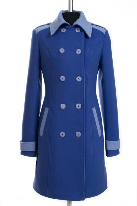 Often, the base material taken in a contrasting color acts as a decor. The off-season clothing group is presented in several color lines. These can be variants of blue shades: cornflower blue, sapphire, azure and heavenly. The models of average length executed in these tones. The style can be straight or fitted with a flared hem.