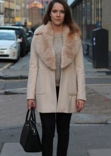 3. Fur collar it always looks gorgeous on any coat. And it is not necessary to choose natural furs, the emphasis is increasingly on artificial materials. The most popular option for a fur collar is an asymmetric style. If you could not find a suitable model of a coat with a fur collar, then you can buy it separately and wear it with any outerwear.