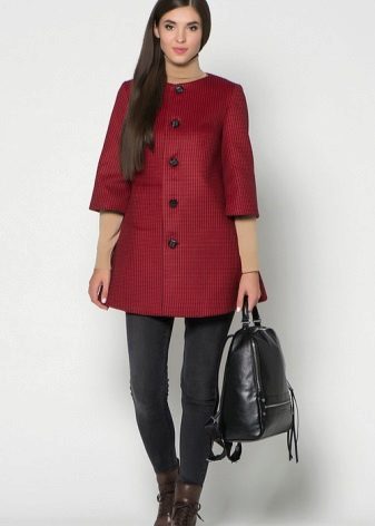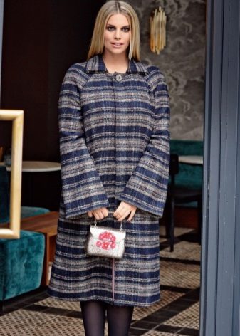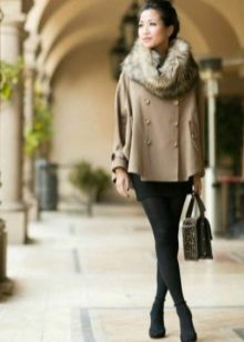 It is best to choose a narrow skirt or trousers that can be complemented with high-fitting boots. If a woman is a happy owner of an aspen waist, then you need to choose a coat with sleeves three quarters or to the elbow. They will serve as a kind of belt, which is not provided for in such a style.