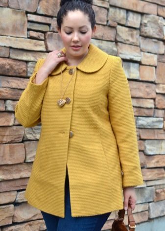 Another option is not even worth considering. For magnificent ladies, you will definitely need to pick up a bright accessory for a trapeze coat or immediately choose a model with expressive and attention-grabbing elements. On a coat of large sizes, there may be a frill on the sleeves or an embroidered edging. As an accessory, a blouse, a turtleneck in bright colors, a scarf, bag or hat will do.