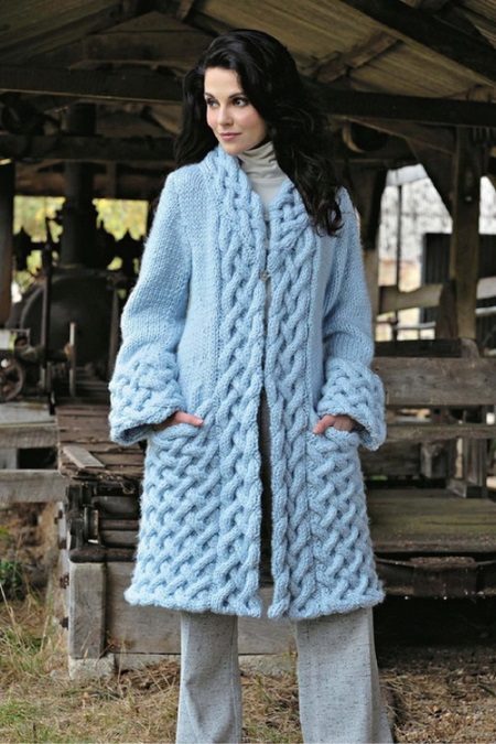The most popular are trapeze coats, which were hand-knitted. Such a trend has always been relevant and complex.