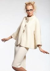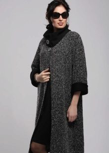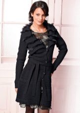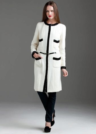 An insulated coat is ideal for autumn and winter. A Chanel-style knit coat is made of booklet wool. It can have a short or medium length, as well as a straight silhouette. Black edging gives the product attractiveness and femininity.