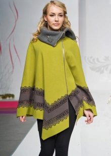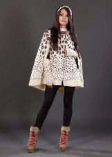 No less popular on cold days are models with hoods. They allow you to create the most comfortable conditions, as they reliably protect from rain, cold and wind.A coat with a voluminous knitted pattern, decorated with frills along the edge of the hood and the bottom of the product, as well as options with wide sleeves of a shortened cut, complemented by decor, look spectacular.