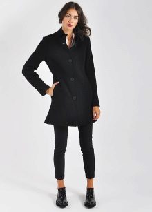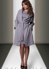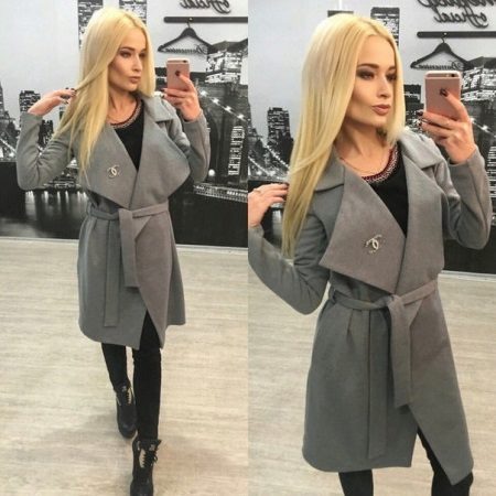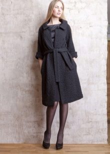 Today, a trendy coat, extended downward. It perfectly emphasizes the waist line thanks to the presence of a belt. This style is presented in various tones, which allows you to choose a color scheme depending on the color type.