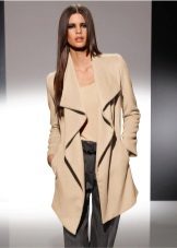 At the peak of popularity there is a coat with knitted sleeves, while the base of the product can be woolen or cashmere. Such a tandem looks fashionable and spectacular. A fitted sleeve in combination with a massive base is the highlight of this style. The sleeve can be both completely from knitwear, and only from the elbow.