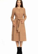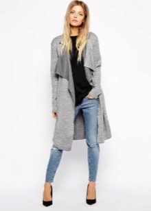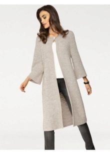 A knitted coat can be worn over a sundress, sheath dresses, or skirts. It looks great in tandem with jeans or trousers. When choosing underwear, you should be guided by only one rule - the texture of the coat fabric should always be denser than the underwear.