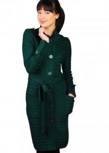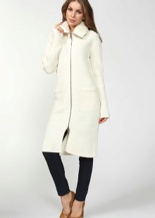 A knitted coat is a universal thing, because it can be combined with different elements of a women's wardrobe. The choice depends on personal preferences and taste.