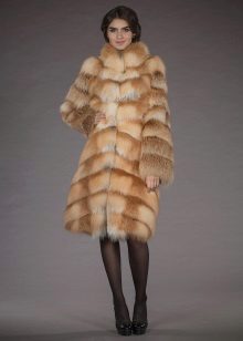 Many girls love red fox fur, because it gives a woman brightness, beauty and elegance. A knitted lining allows the fur coat to fit perfectly on the figure, emphasizing the bends of the female body.
