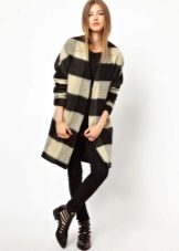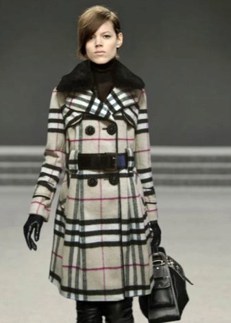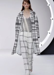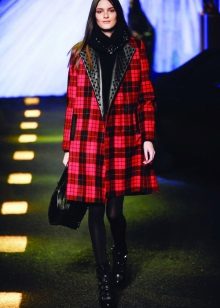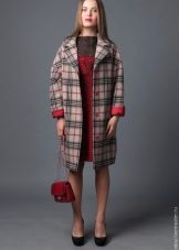 An original coat in a large cage will help diversify your usual look. The most popular is the Vichy pattern - a two-color cell created from stripes of equal width. In the traditional interpretation, it is not very large, but modern designers like to use it in a "hypertrophied" form. A large-cage product is not recommended for ladies with shapes, but it will look great on slender girls. It is recommended to choose plain clothes for such a coat so as not to overshadow this geometric perfection.