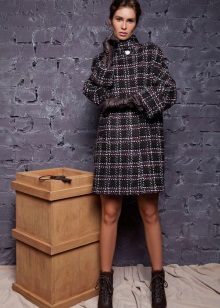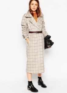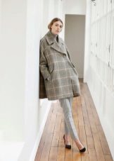 If autumn pleases with good weather and a bright sun, it's time to wear a mellow coat in a cage. This model is perfect for slim beauties. The coat goes well with a variety of clothes and makes it possible to create stylish and interesting bows every time.