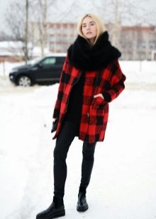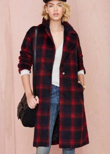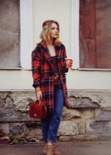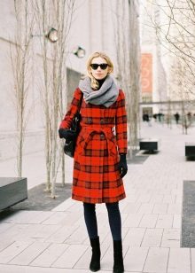 The red-checked coat looks very impressive and stylish. Depending on the pattern you have chosen, you can get both a bold and a very cozy autumn look. Such a coat will become the main highlight of the image and will revive even the most dull and boring image.