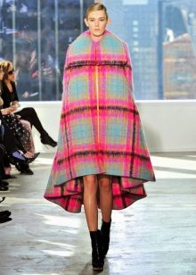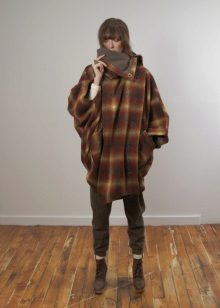 Coat poncho, reminiscent of a cozy plaid, is very popular. It can be found in many brands of the mass market or even sew it yourself. On the Internet you can find many master classes on this subject, even a beginner can cope with some of them. Checkered plaid can become a stylish and original outfit, and in it you will be as warm as in a blanket.